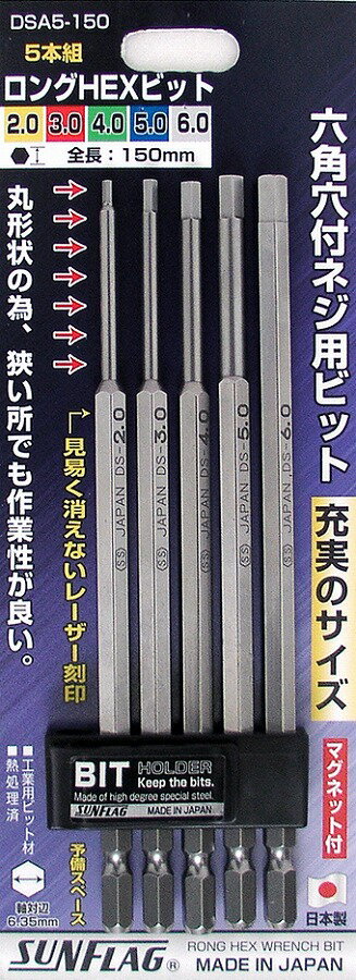 ヘキサゴンビットと呼ばれることもある6角穴付きネジに使うビット。プラスやマイナスのネジよりもジャストサイズのビットを使わないと締めたり、緩めたりできないネジです。
